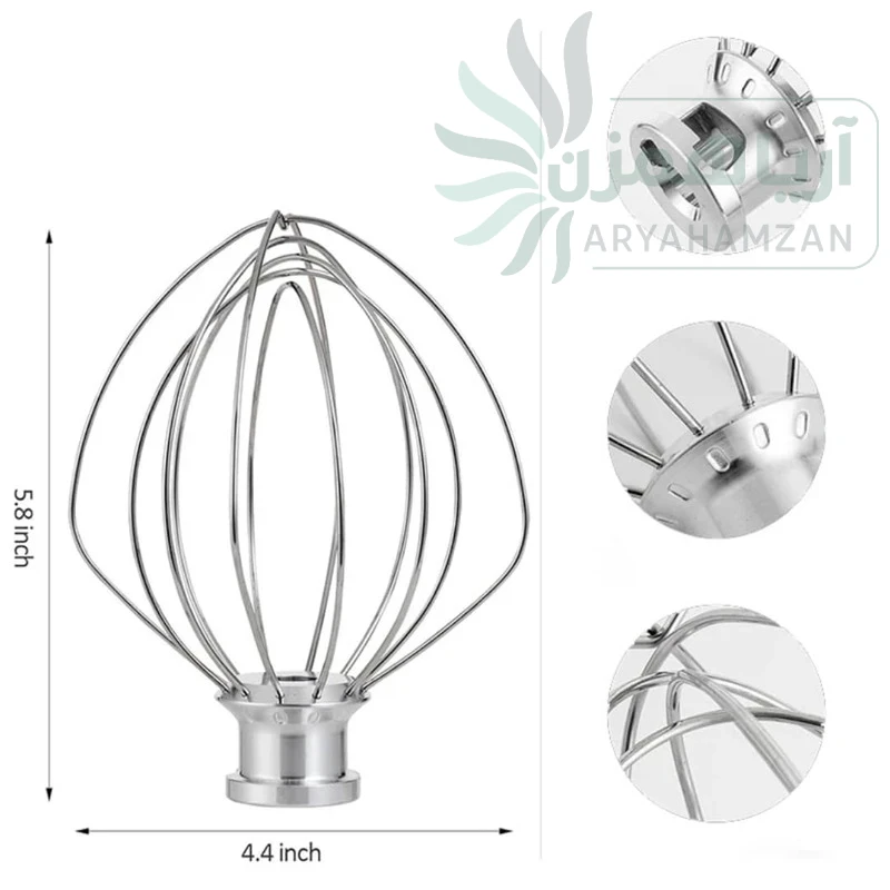 پره خامه زن فابریک همزن کیچن اید مدل آرتیزان 5KSM175PSE پره مفتولی که به آن پره بادکنکی (Balloon whisk) گفته میشود، یکی از پرههای رایج و کاربردی در همزن های برقی است. از این پره برای کارهایی استفاده میشود که نیاز به ترکیب هوا در مخلوط مد نظر شما دارد. ظاهر بادکنکی شکل به همراه سیمهای نازک و مفتولی متعدد، باعث میشود تا هوا به راحتی از آن عبور کند و وارد مخلوط شما شود و در نتیجه بافتها و مخلوط های سبکتر و نرمتری ایجاد شود