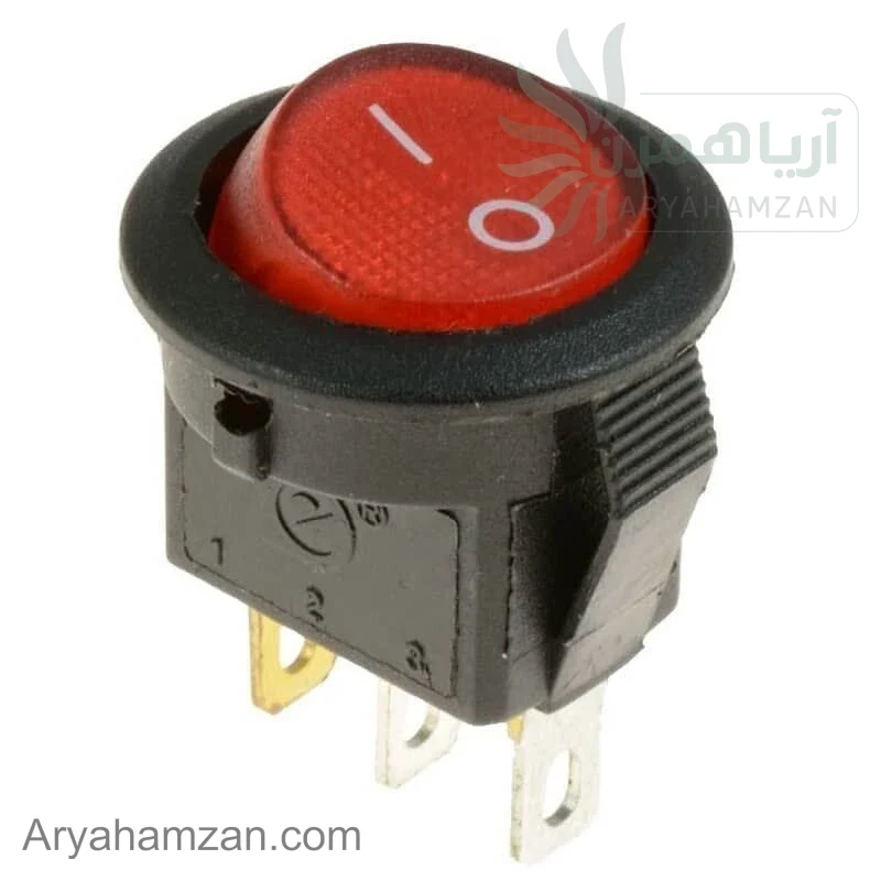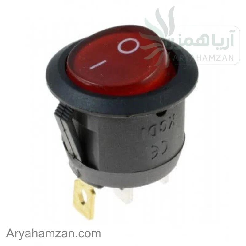 کلید راکر گرد چراغدار دو حالته سه پایه برجایا 7 کلید راکر دو حالته ON و OFF از نوع گرد دایره ای شکل، دارای سه پین، چراغ دار این کلید گونه ای راکر سوییچ تک پل است که سه پین یا 3 پایه دارد.